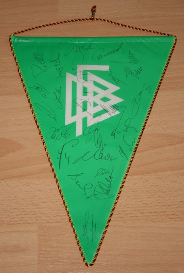 Borussia Dortmund: Programmheft mit Autogrammen Programmheft Eintracht Rheine gegen Borussia Dortmund mit Autogrammen, 2009 DFB Wimpel: Mit Autogrammen der Nationalmannschaft DFB Wimpel vom Länderspiel Deutschland gegen Mexiko 1:1. Das Spiel fand am 14.10.1992 in Dresden statt. Auf dem Wimpel sind u. a. Originalunterschriften von Bodo Illiger, Andy Köpke, Stefan Reiter, K-H. Riedle, Knut Reinhardt, Olaf Thon, Thomas Häßler, Thomas Helmer, Lothar Matthäus, Jürgen Klinsmann, Rudi Völler und Sepp Maier.